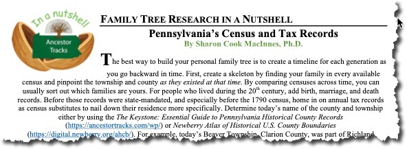 Pennsylvania's Census and Tax Records In A Nutshell (pdf download)