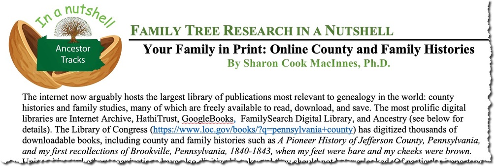 Your Family in Print: Online County & Family Histories In A Nutshell